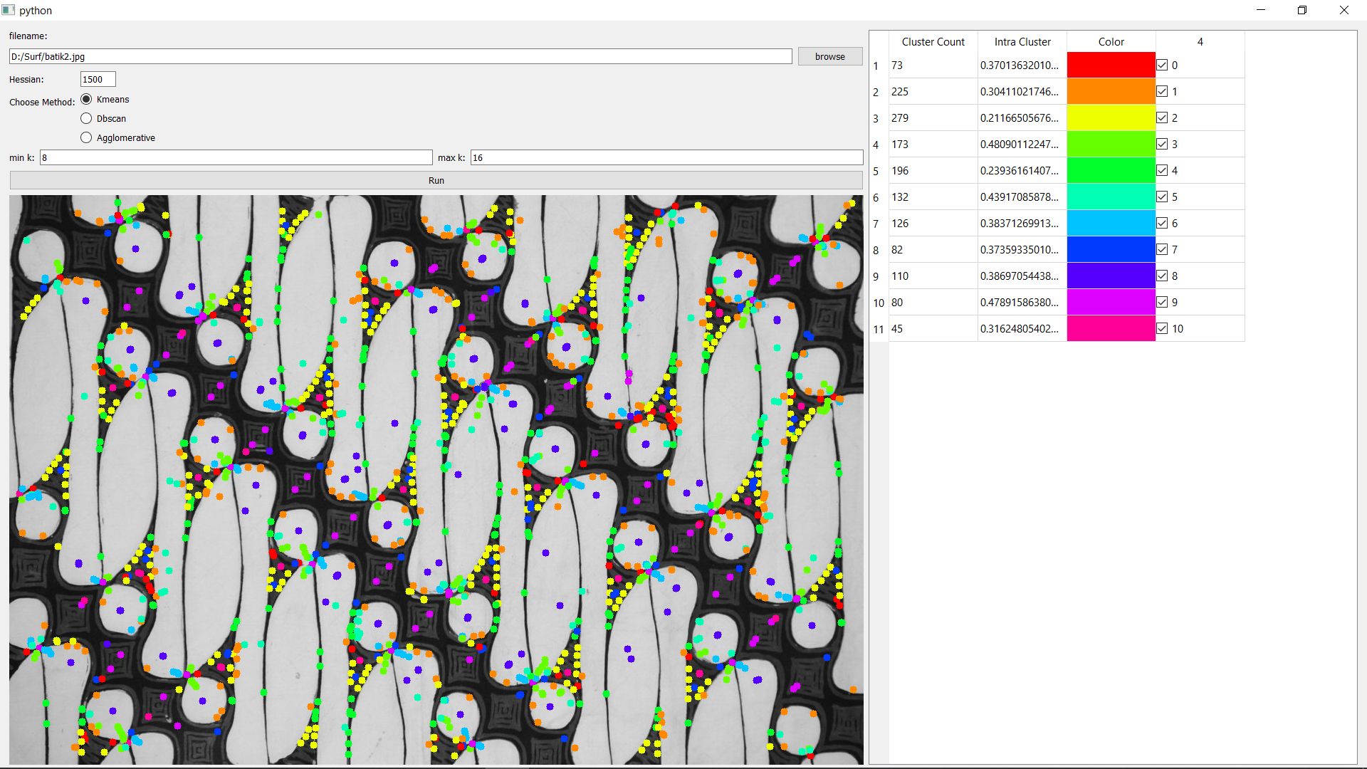 - Desciption: Analysis of batik pattern using SURF SIFT K-Means and DBSCAN